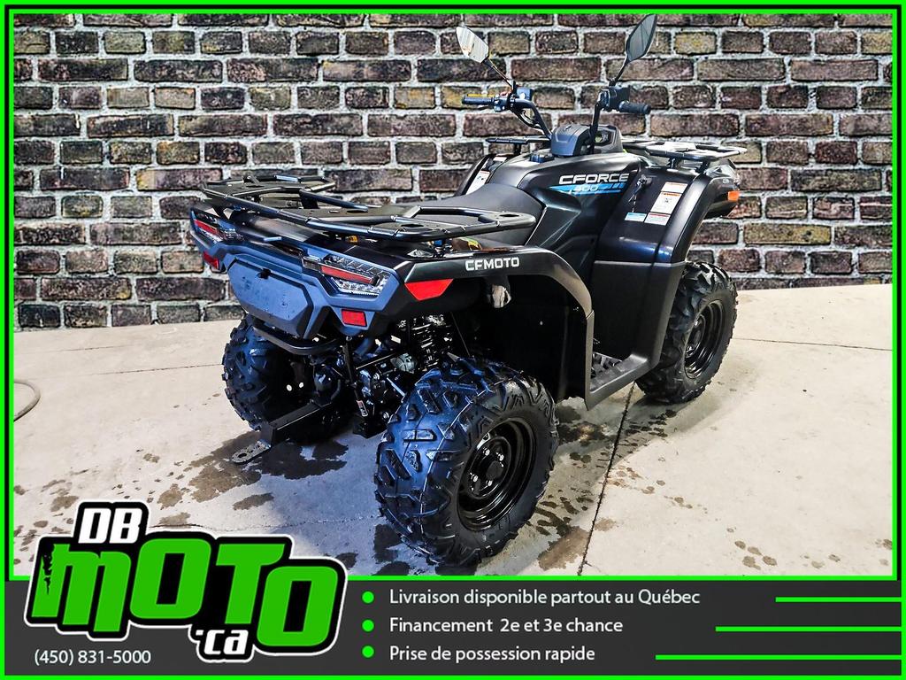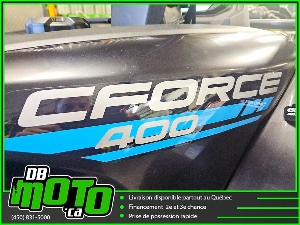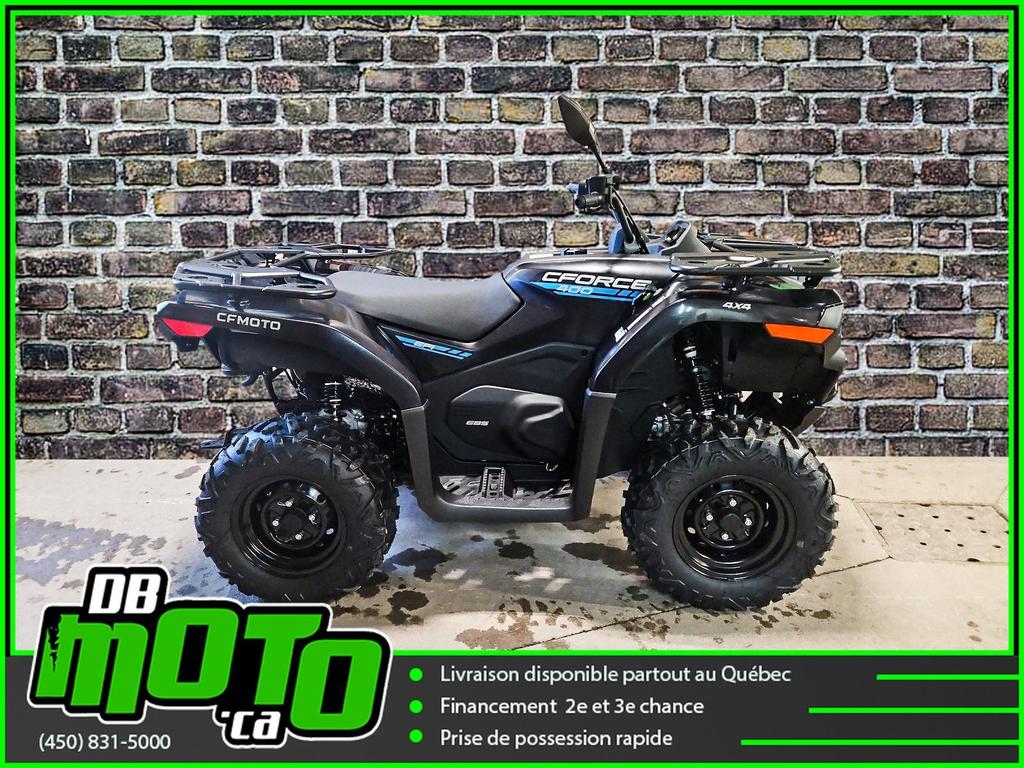 2025 CF MOTO CFORCE 400 1 UP CLASSIQUE<br><br>Financement facile et rapide disponible<br><br>- Moteur 400 cm3 à injection de carburant<br>- Transmission à variation continue de CVTech- IBC<br>- Direction assistée électronique (EPS)<br>- Tableau de bord à affichage numérique<br>- Prises 12V et port usb simple à charge rapide 18W<br>- Rétroviseurs<br>- Roues en acier<br>- Phare à DEL avec clignotants intégrés<br>- Plan de protection EASY disponible<br><br>Nous reprenons tous vos échanges : côte à côte, vtt, moto, motocross, motomarine, auto, voiture, camion et de tous les marques : bombardier, polaris, cf moto, arctic cat, brp, honda, yamaha, suzuki et plus !<br><br>Vous pouvez retrouver ce véhicule au 2069 route 125 à ste-julienne<br><br>Faites votre demande en ligne en quelques minutes !<br><br>Jusqu'à la 3e chance au crédit. Nous avons des spécialistes en rétablissement de crédit.<br><br>https://www.dbmoto.ca/fr/financement/<br><br>Ou faites votre demande de crédit par téléphone au 450-831-5000 poste 104<br><br>Voyez notre inventaire complète sur notre site web : www.dbmoto.ca<br><br>WE SPEAK ENGLISH TOO !<br><br>LE 0% EST SUR APPROBATION DE CRÉDIT SUR 12 MOIS \*\*