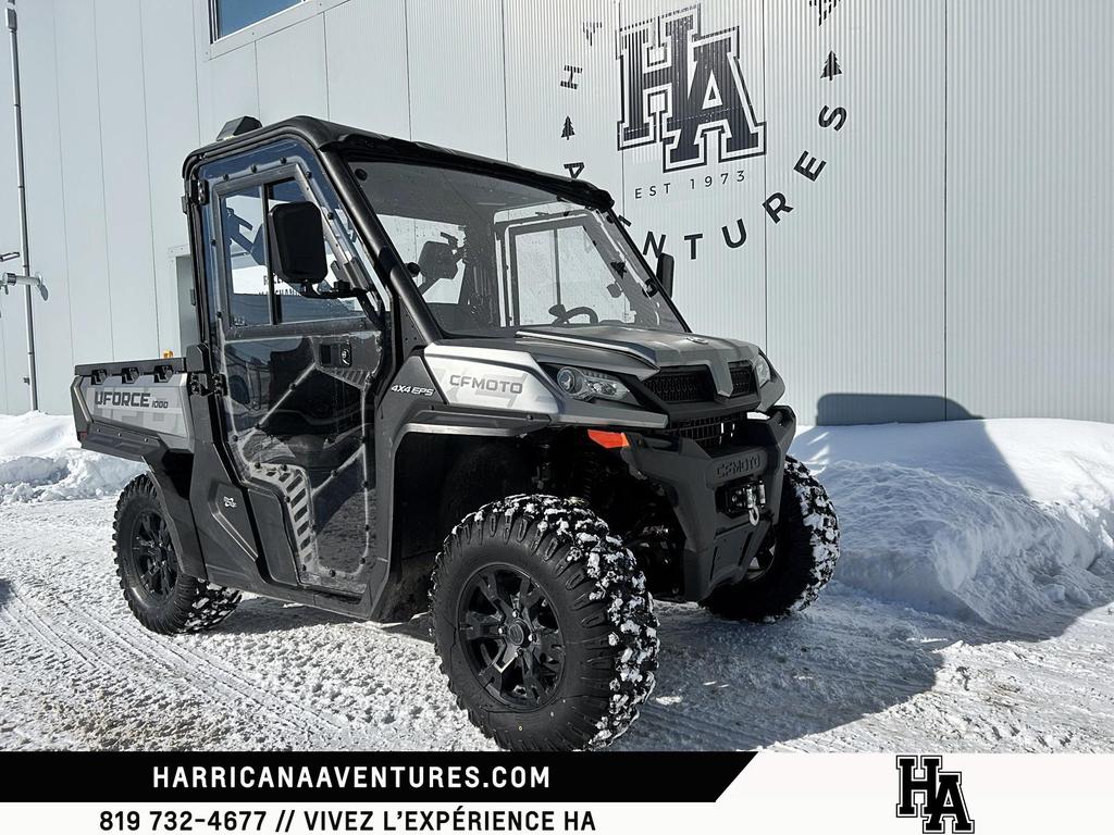 À vendre : 2023 CFMoto UForce 1000 une excellente occasion dobtenir un côte-à-côte fiable et polyvalent, prêt pour le travail comme pour les escapades. Ce véhicule usagé affiche seulement 3 738 km et se présente dans une élégante couleur grise. Idéal pour les propriétaires de terrain, les chasseurs, les amateurs de plein air ou toute personne qui veut un véhicule pratique et agréable à conduire. <br><br>Chez Harricana Aventures, on mise sur un service simple, transparent et axé sur vos besoins. Notre équipe à Amos est là pour vous conseiller et vous aider à repartir avec le bon véhicule, au bon prix.<br><br>Avantages du véhicule<br><br>- Faible kilométrage : 3 738 km<br>- Polyvalent : parfait pour les tâches et les loisirs<br>- Cabine avec chauffage: parfait pour profitez de votre véhicule peut importe les condition extérieur<br><br>Pourquoi acheter chez Harricana Aventures<br><br>- Concessionnaire local à Amos<br>- Équipe passionnée et service attentionné<br>- Grand choix de marques : CFMOTO, Yamaha, Suzuki, Mercury, Princecraft, Starcraft<br>- Financement facile, pré-approbation possible par téléphone<br><br>Venez le voir en personne!<br>Harricana Aventures<br>131, Route 109 Sud, Amos, Quebec, J9T 3A2<br>Téléphone : 819 732-4677<br><br>Contactez-nous dès aujourdhui pour planifier une visite ou réserver votre essai. Ce UForce 1000 pourrait partir rapidement!