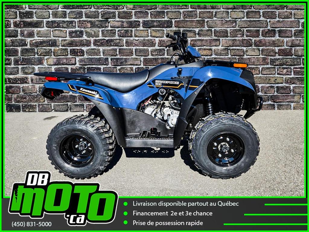 2025 KAWASAKI BRUTE FORCE 300 KVF<br><br>Financement facile et rapide disponible<br><br>Moteur<br>271 cm3, refroidi par liquide, 4 temps, SACT, 2 soupapes par cylindre<br>Alésage x course<br>72,7 x 65,2 mm<br>Taux de compression<br>11.0:1<br>Système de carburant<br>Carburateur : CVK32<br>Allumage<br>Allumage numérique à transistor complet<br>Départ<br>Électrique avec recul de secours<br>Lubrification<br>Lubrification forcée, carter humide<br>Transmission<br>CTV avec embrayage centrifuge, automatique à 2 vitesses avec marche arrière<br>Transmission finale<br>2 roues motrices, arbre<br><br> <br><br>Nous reprenons tous vos échanges : côte à côte, vtt, moto, motocross, motomarine, auto, voiture, camion et de tous les marques : bombardier, polaris, cf moto, arctic cat, brp, honda, yamaha, suzuki et plus !<br><br>Vous pouvez retrouver ce véhicule au 2069 route 125 à ste-julienne<br><br>Faites votre demande en ligne en quelques minutes !<br><br>Jusqu'à la 3e chance au crédit. Nous avons des spécialistes en rétablissement de crédit.<br><br>https://www.dbmoto.ca/fr/financement/<br><br>Ou faites votre demande de crédit par téléphone au 450-831-5000 poste 104<br><br>Voyez notre inventaire complète sur notre site web : www.dbmoto.ca<br><br>WE SPEAK ENGLISH TOO !