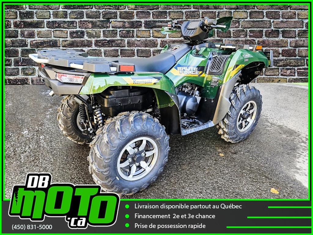 2026 KAWASAKI KVF BRUTE FORCE 750 SE EPS<br><br>Financement facile et rapide disponible à partir de seulement 0%<br><br>- Transmission 2WD/4WD sélectionnable avec contrôle de blocage de différentiel avant variable<br>- Capacité de remorquage de 567 kg (1 250 lb)<br>- Transmission à variation continue (CVT)<br>- Pneus CST pour une traction et une maniabilité améliorées<br>- Suspension indépendante aux quatre roues<br>- Porte-bagages robustes avec couvercles de porte-bagages en plastique (y compris les supports KQR, les points d'arrimage et les rainures de retenue du godet)<br>- Direction assistée électrique sensible à la vitesse (EPS)<br>- Protège-mains de protection<br>- Garde-brosse avant<br>- Treuil pour véhicules tout-terrain WARN VRX 25-S<br>- Couleurs et graphismes spéciaux<br>- Connectivité smartphone via RIDEOLOGY THE APP POWERSPORTS<br><br>Nous reprenons tous vos échanges : côte à côte, vtt, moto, motocross, motomarine, auto, voiture, camion et de tous les marques : bombardier, polaris, cf moto, arctic cat, brp, honda, yamaha, suzuki et plus !<br><br>Vous pouvez retrouver ce véhicule au 2069 route 125 à ste-julienne<br><br>Faites votre demande en ligne en quelques minutes !<br><br>Jusqu'à la 3e chance au crédit. Nous avons des spécialistes en rétablissement de crédit.<br><br>https://www.dbmoto.ca/fr/financement/<br><br>Ou faites votre demande de crédit par téléphone au 450-831-5000 poste 104<br><br>Voyez notre inventaire complète sur notre site web : www.dbmoto.ca<br><br>WE SPEAK ENGLISH TOO !<br><br>LE 0% EST SUR APPROBATION DE CRÉDIT SUR 12 MOIS \*\*
