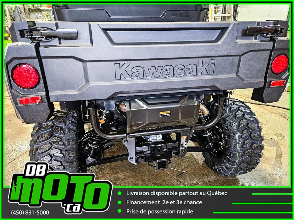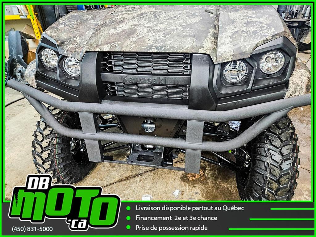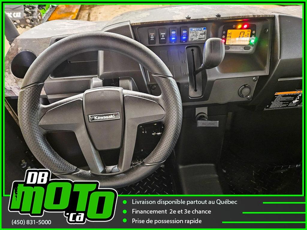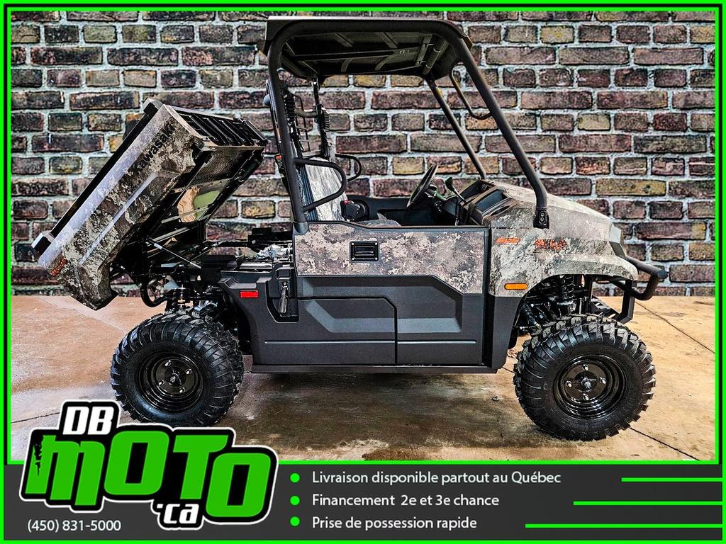 2025 KAWASAKI MULE PRO MX CAMO<br><br>Financement facile et rapide disponible<br><br>- Direction assistée électrique asservie à la vitesse (EPS)<br>- Plateforme de chargement en acier durable<br>- Transmission à variation continue (CVT)<br>- 2WD/4WD sélectionnable électriquement, différentiel arrière à double mode<br>- Phares halogènes et LED<br>- Freins à disque aux quatre roues et frein de stationnement indépendant<br>- Toit ouvrant et carrosserie camouflage True Timber Strata<br><br>Nous reprenons tous vos échanges : côte à côte, vtt, moto, motocross, motomarine, auto, voiture, camion et de tous les marques : bombardier, polaris, cf moto, arctic cat, brp, honda, yamaha, suzuki et plus !<br><br>Vous pouvez retrouver ce véhicule au 2069 route 125 à ste-julienne<br><br>Faites votre demande en ligne en quelques minutes !<br><br>Jusqu'à la 3e chance au crédit. Nous avons des spécialistes en rétablissement de crédit.<br><br>https://www.dbmoto.ca/fr/financement/<br><br>Ou faites votre demande de crédit par téléphone au 450-831-5000 poste 104<br><br>Voyez notre inventaire complète sur notre site web : www.dbmoto.ca<br><br>WE SPEAK ENGLISH TOO !