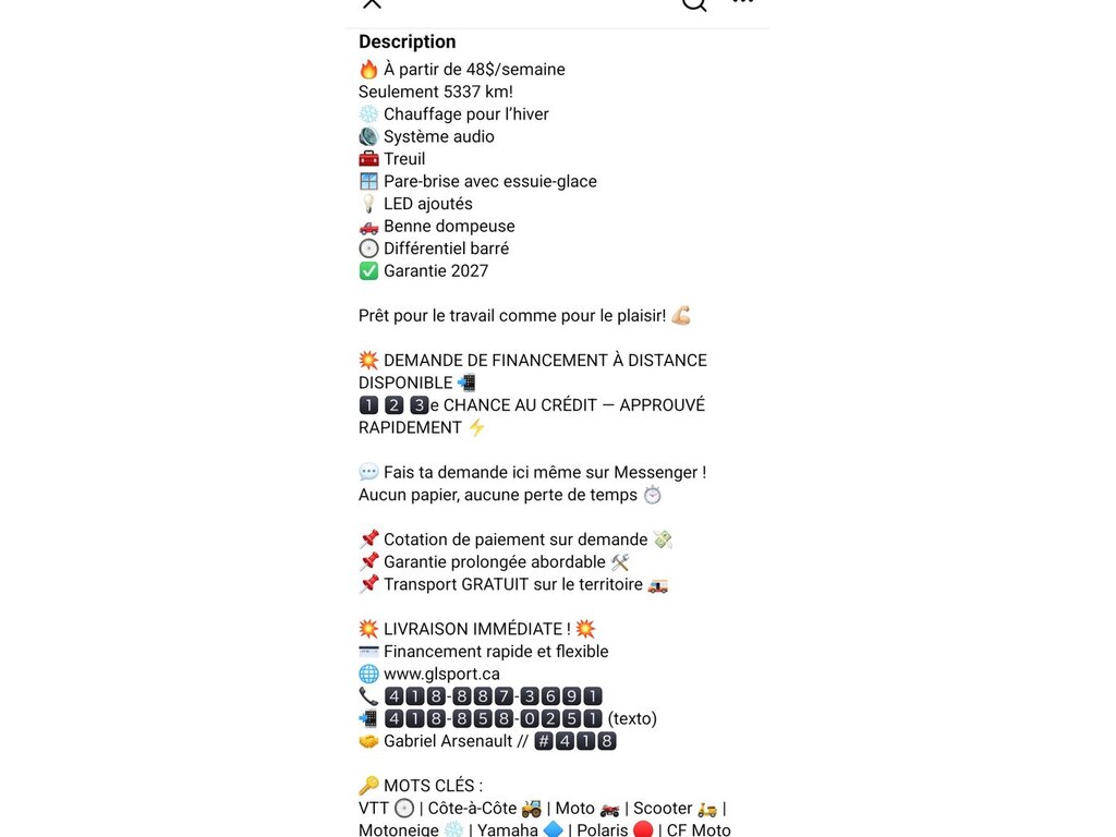 VTT À VENDRE par un commerçant à Saint-Gervais, QC