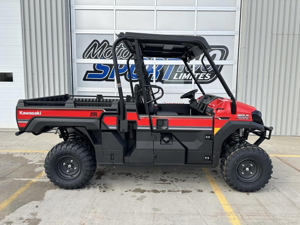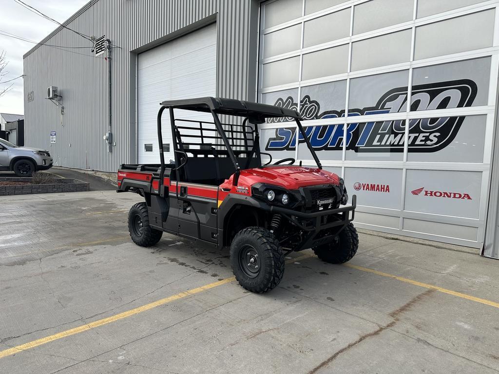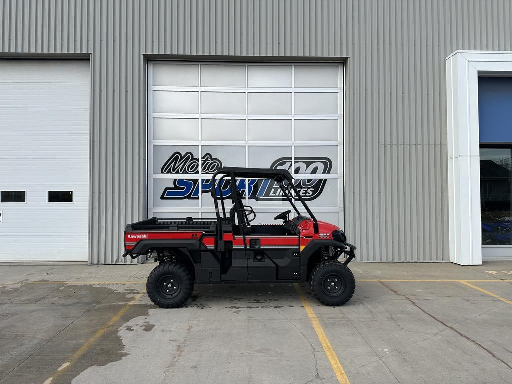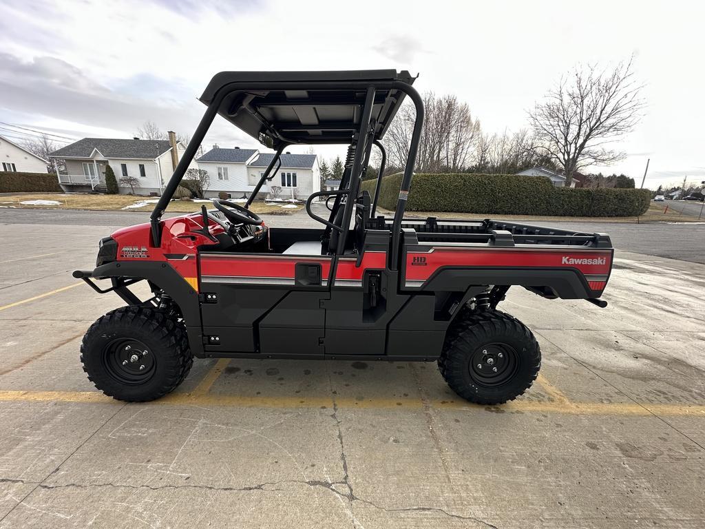Kawasaki MULE PRO-FX 1000 HD Edition 2024 chez Moto Sport 100 Limites à Drummondville Le Kawasaki MULE PRO-FX 1000 HD Edition 2024 est un véhicule utilitaire haute performance conçu pour affronter les travaux les plus exigeants tout en offrant confort, sécurité et polyvalence. Idéal pour les professionnels et les passionnés de plein air, il combine puissance, robustesse et technologies avancées pour répondre à toutes vos missions. Caractéristiques principales - Moteur bicylindre parallèle de 999 cm³ refroidi par liquide : puissance et fiabilité maximales - Capacité de remorquage jusqu'à 1 tonne (907 kg) pour transporter vos charges lourdes - Caisse de chargement de 1,9 m² (20 pi²) pour un espace optimal - Système 2RM/4RM à commande électrique avec différentiel arrière bimode pour une traction adaptable - Direction assistée électrique (EPS) sensible à la vitesse et colonne de direction réglable - Suspension arrière autonivelante assurant une stabilité parfaite, même sous charge Équipements supplémentaires - Rangement pratique sous la banquette conducteur et centre - Rétroviseur pour meilleure visibilité - Ceintures de sécurité antiserrage - Toit pare-soleil pour protection contre les intempéries - Phares halogènes et DEL pour un éclairage optimal - Pare-chocs avant et arrière en acier pour une protection renforcée Technologies avancées - Papillons des gaz électroniques pour un contrôle précis - Technologie ERGO-FIT pour un confort optimal adapté à tous les conducteurs Pourquoi choisir Moto Sport 100 Limites à Drummondville ? - Concessionnaire expert en Honda, Kawasaki, Slingshot, Polaris, Yamaha et Surron - Service client exceptionnel et conseils personnalisés - Entretien et pièces de qualité supérieure pour maximiser la durabilité de votre véhicule - Accessible depuis Victoriaville, Trois-Rivières et Sherbrooke Découvrez le Kawasaki MULE PRO-FX 1000 HD Edition 2024 dès maintenant chez Moto Sport 100 Limites à Drummondville. Localisé au Centre-du-Québec, à proximité de Victoriaville, Trois-Rivières et Sherbrooke. Appelez-nous au (819) 445-6686 !