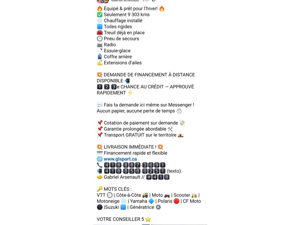 VTT À VENDRE par un commerçant à Saint-Gervais, QC