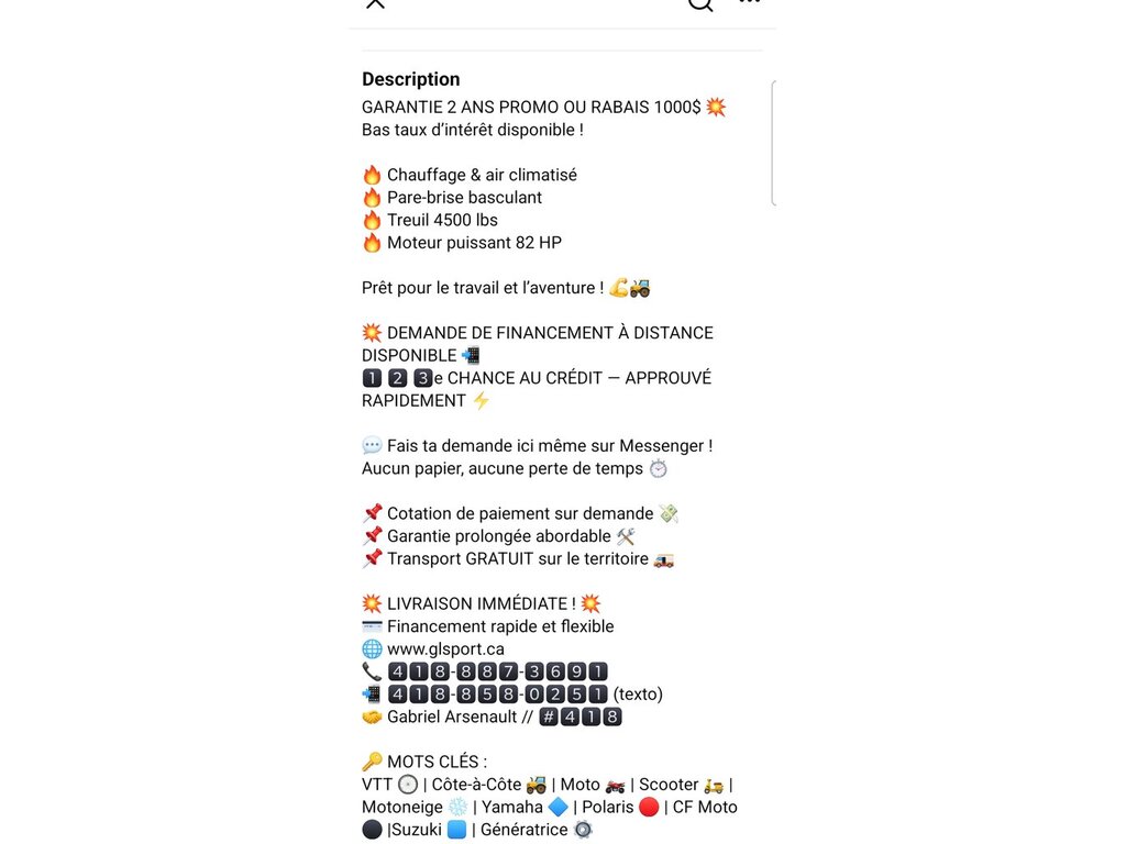VTT À VENDRE par un commerçant à Saint-Gervais, QC