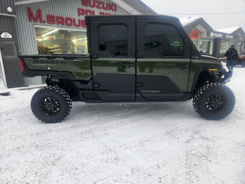 ? RANGER CREW XD 1500 NorthStar Mountaineer Edition Couleur : Vert métallisé Treeline Green Capacité : 6 places ? Caractéristiques ultimes du XD 1500 NorthStar• Moteur ProStar 1500 cm³ – 110 ch avec transmission STEELDRIVE • ? Cabine fermée avec vitres électriques et pare-brise basculant • ?? Chauffage & climatisation (CVC) installés en usine • Remorquage : 1 588 kg Chargement : 680 kg • ?? Sièges avant chauffants • ? Élévateur électronique de la caisse de chargement • Treuil Pro Series 2 722 kg (6 000 lb) avec câble synthétique, arrêt automatique, récupération rapide et télécommande sans fil • Éclairage LED de la benne + panneau de commande au plafond • Pneus Kenda Cross Trail 30" + Roues 15" • Accessoires Lock & Ride MAX intégrés • Audio JBL Trail Pro 2000 • Écran 7" RIDE COMMAND avec caméra de recul d'origine • Services connectés RIDE COMMAND+ • Port d'alimentation 12V dans la benne • Anneaux en D pour pare-chocs et barre supérieure ? Garniture Mountaineer exclusive • ? Emblèmes & graphismes Mountaineer • ?? Rapport de pont arrière 3,77 ? couple renforcé à bas régime • ? Vitres teintées • ? Vitesse de pointe réduite pour une maîtrise optimale en terrain montagneux - Prise de possession rapide.? - Véhicule en inventaire.? - Options de financement flexibles.? - Aucune surprise : Seulement les taxes de vente à ajouter!? Livraison disponible dans les environs? FINANCEMENT 1ère - 2e - 3e chance avec des spécialistes du crédit !! Au plaisir de vous servir? Richard Brousseau Vente en ligne sans frais ?? 1-866-983-3212 4?? 1??8??3??8??3??3??2??1??2?? Poste 1??2??2??7??pour Richard ou 1??2??2??5?? pour Éric ??texto=418-625-0597 www.mbrousseau.com e-mail= mbrousseau@sogetel.net Concessionnaire Polaris ????? Dépositaire des marques : Polaris, Suzuki, Stihl, troy-bilt, cub cadet,Oregon, Woody, Klim, Camso, Commander, Kimpex, Motovan, BSL, Parts Canada, Gamma . Mots Clés : VTT, Côte à Côte, Moto, Scooter, Cyclomoteur, Motoneige Polaris , Suzuki , KLIM , Cub Cadet ,Troy Bilt Données et prix sujets à changement sans préavis.