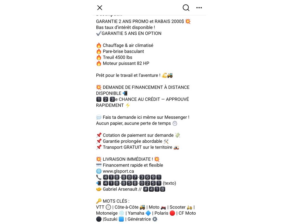 VTT À VENDRE par un commerçant à Saint-Gervais, QC