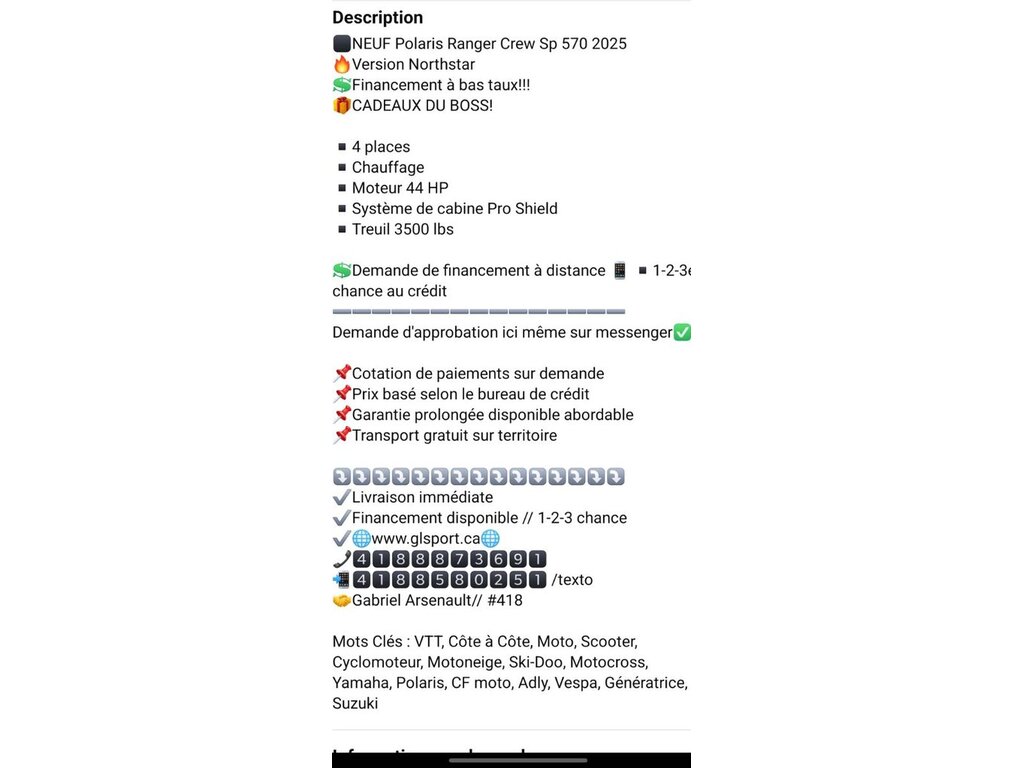 Polaris RANGER 570 EPS NORTHSTAR 2025 à vendre