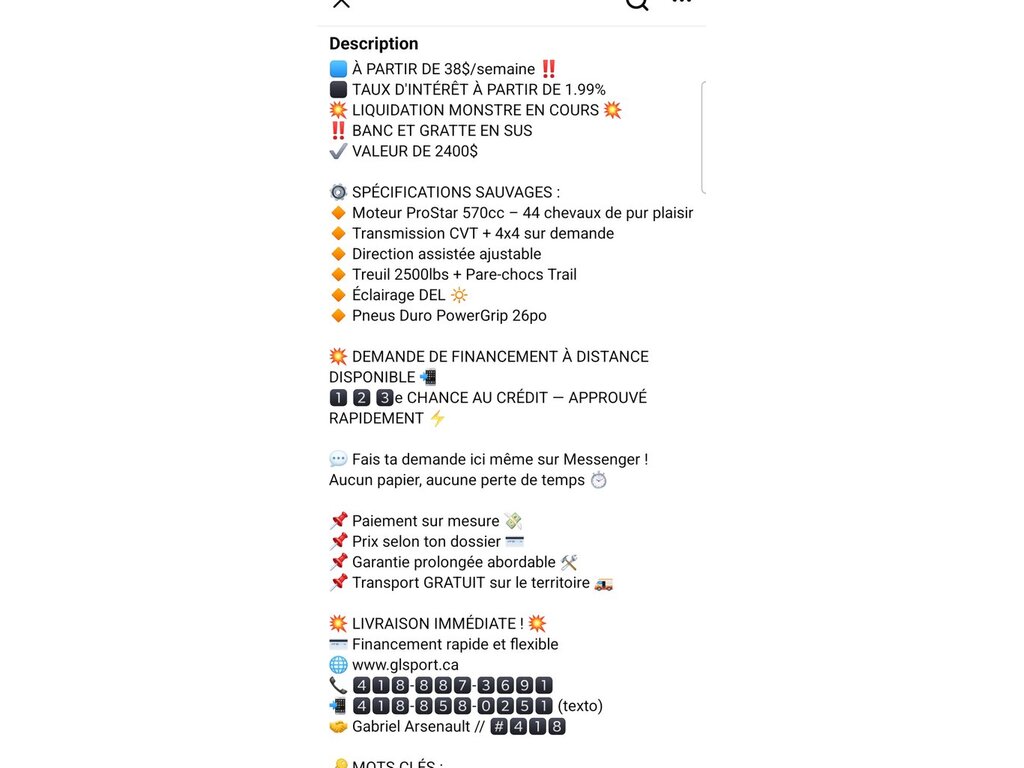 VTT À VENDRE par un commerçant à Saint-Gervais, QC