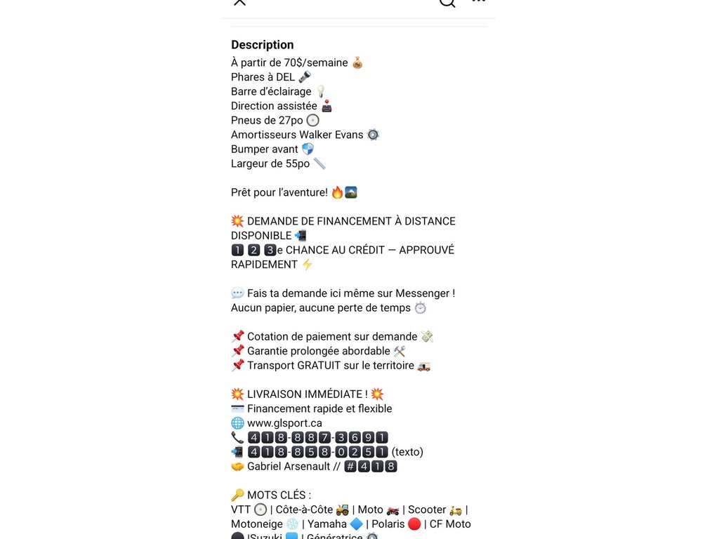 VTT À VENDRE par un commerçant à Saint-Gervais, QC