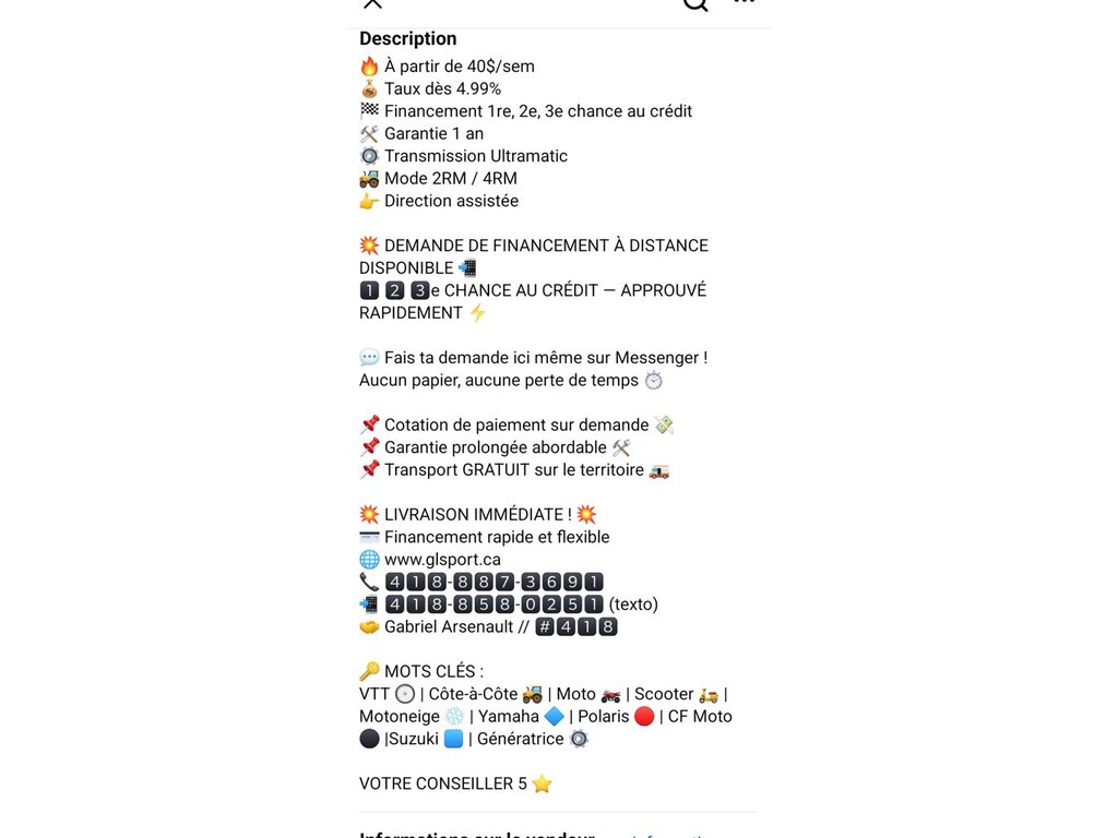 VTT À VENDRE par un commerçant à Saint-Gervais, QC