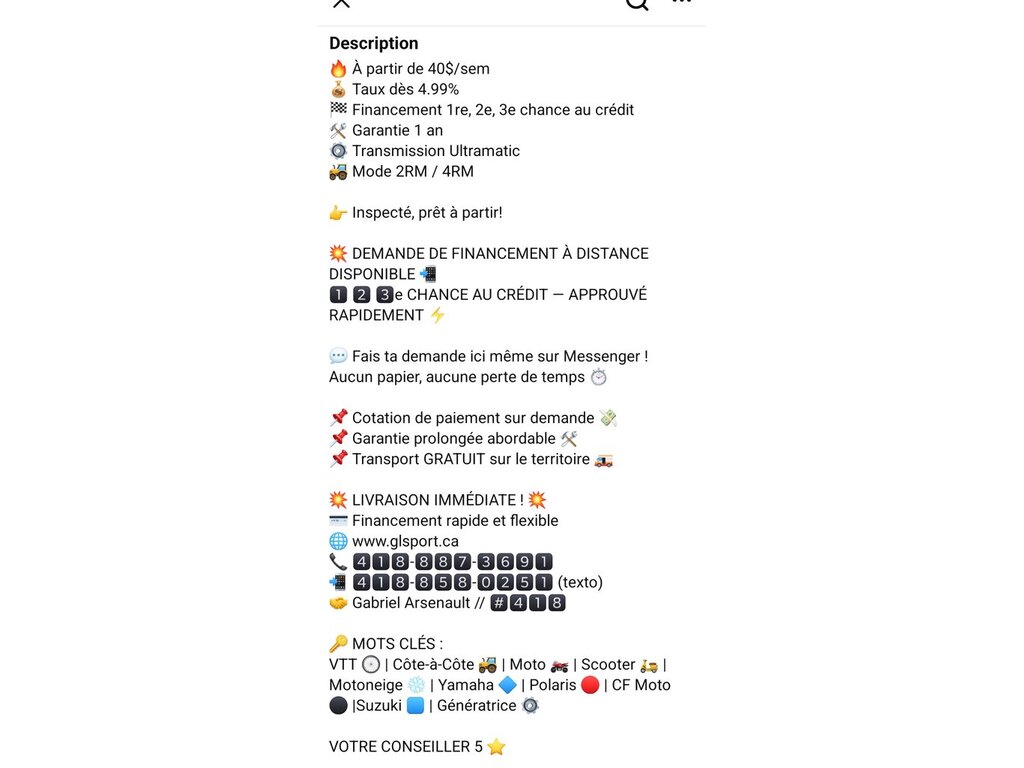 VTT À VENDRE par un commerçant à Saint-Gervais, QC