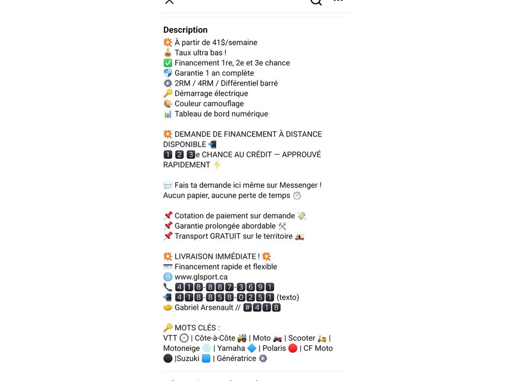 VTT À VENDRE par un commerçant à Saint-Gervais, QC