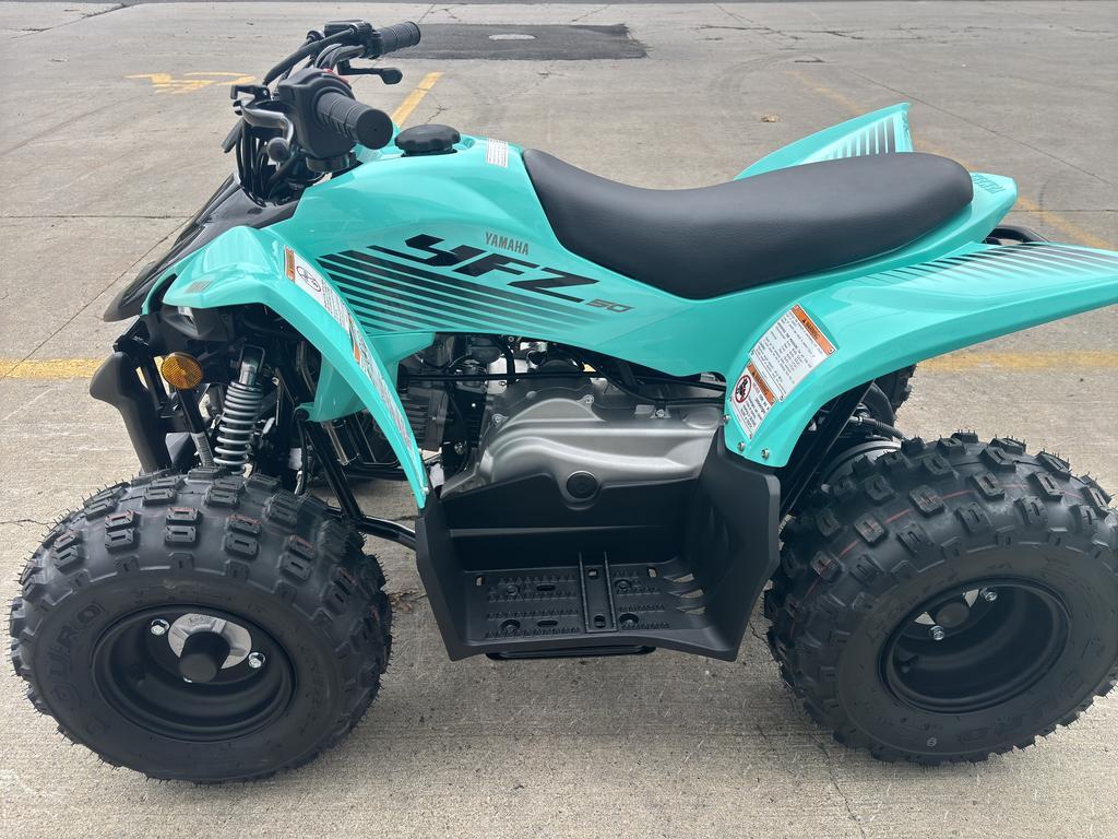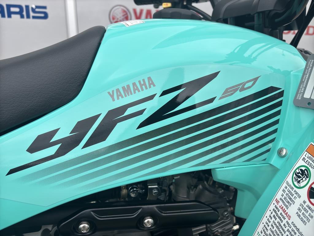 Yamaha YFZ50 2025 : le VTT idéal pour les jeunes pilotes Le Yamaha YFZ50 2025 est parfaitement conçu pour initier les jeunes pilotes, dès l'âge de 6 ans, avec sécurité et confiance. Doté de fonctionnalités de sécurité parentale, d'un démarrage électrique et d'une transmission automatique, ce modèle allie simplicité et fiabilité. Caractéristiques principales : Moteur 4 temps de 49,4 cm³ avec simple arbre à cames en tête (SACT), 2 soupapes et refroidissement par air, pour une puissance douce et maîtrisée Démarreur électrique à bouton-poussoir complété par un démarreur auxiliaire au pied Transmission à variation continue (TVC) entièrement automatique pour une conduite facile Carburateur Mikuni VM12 pour des performances régulières Allumage CDI sans entretien, assurant une longévité maximale Disponible chez Moto Sport 100 Limites à Drummondville. Appelez-nous au (819) 445-6686 !