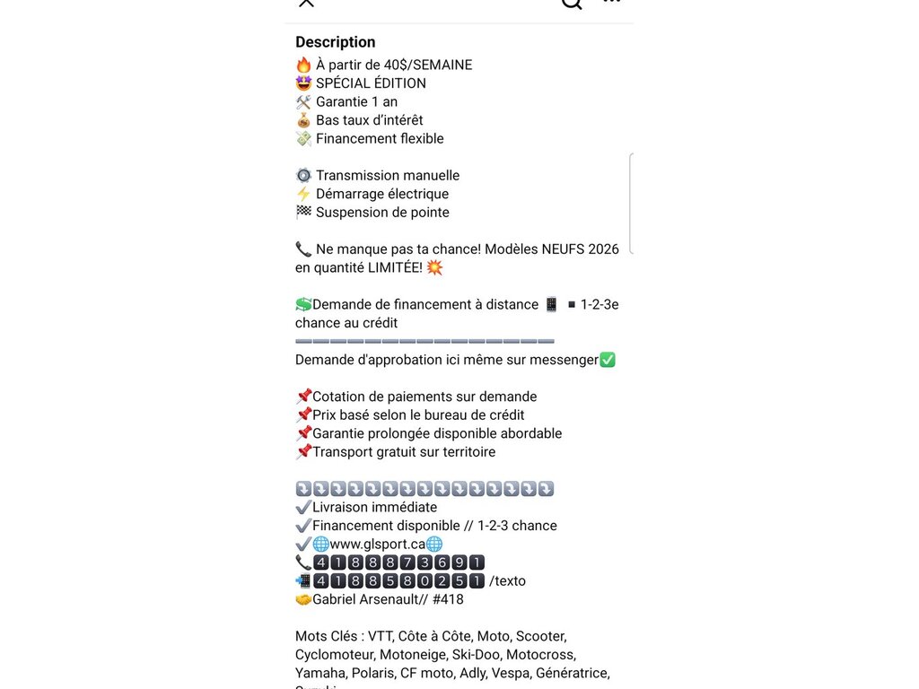 VTT À VENDRE par un commerçant à Saint-Gervais, QC